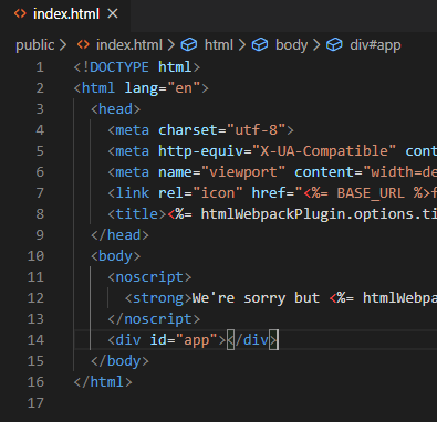 App.vue가 들어갈 장소를 명시해놓는 뼈대 역할을 한다.
